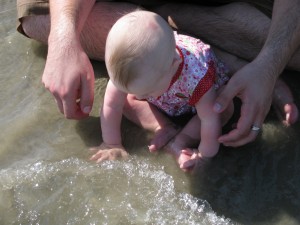 After lunch we poked around some of the historic buildings and then went to the beach. We didn’t really plan to get all the way in the water, but Daddy and McKamy made it work. She loves the beach! The waves are so interesting and it’s a ton of fun to grab handfuls of sand and try to get them to our mouth before Daddy catches us. I think we managed to keep most of the sand out of her digestive system! Hehe.