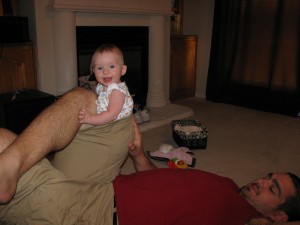 Playing with Daddy … who knew that a pant leg could be so much fun?!?