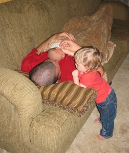 Kamy is being a great big sister to Caden. She will lean over and give him a kiss with and without prompting. She’s gentle with him and will sit next to me while I hold him and listen when I talk about him. She’s certainly got her insecurity and is adjusting to sharing our attention, but she’s handling it really well. Just bear in mind, there’s a short fuse that takes a moment to go off. For being 19 months old, she sure acts like a two year old at moments!