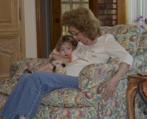 On Wednesday we went to Nana’s house and spent the afternoon visiting with her. Both kids had a great time playing! Caden and Kamy both love playing with all the wooden spools of thread Nana has collected … they’re just perfect for stacking and putting in your mouth!
