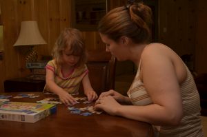 - Kamy has always loved puzzles. Since she was little-bitty she would sit and do her wooden puzzles over and over again. She has a knack for them and really enjoys putting a puzzle together. This month she took a pretty significant jump in puzzle difficulty. Kamy’s new favorite puzzle is a scene with four ballerinas that has sixty pieces! I wasn’t sure if she’d feel overwhelmed with how many pieces she needed to place, but she is doing awesome! She understands how to look at each piece and figure out where it goes in relation to the overall picture. She is even confident enough in her placement that they do not need to attach and she can align pieces on the diagonal – knowing where they are going to go when she finds the connecting piece. I am super impressed with how she can see smaller parts of a larger picture and know how they relate. I have a feeling she’ll be good at math!