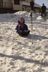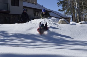 Sledding was the most popular activity. It took a couple days of short runs to make the sledding track nice and smooth, but by the end of the week it was perfect. The kids made a game by attempting to run over or grab a ski pole stuck in the snow. Kamy did a great job steering and could run it over frequently. Caden had a tendency to over correct while steering, so he’d throw himself out of the sled as he shot by to grab the pole. It was hilarious to watch!