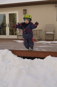 The kids also loved sliding down the big boulders covered with snow. By some miracle they haven’t torn massive holes in the seats of their snow pants, so they happily slid on their bottoms until there was no more snow to be found on the boulders.