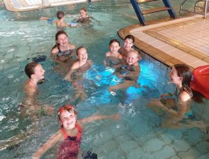 Saturday morning, all four of us went to the pool Schaeck in Twello (via bicycle) to swim! Since Kamy missed swimming on Wednesday and the amusement park on Friday, we wanted to make a special point of getting to the pool. They had open swim from 10:30-12, and Barbara met us there with Gijs, Britt, and Loes. Kamy loved the big slide and spent most of the time playing in the water with Gijs. Caden found a group of 4 girls who followed him around for a while. Keller has a new friend in Loes. Her nickname was Loes Poes Appelmoes, but Keller changed it to Loes Goose Appelmoes, which she thought was hilarious!
