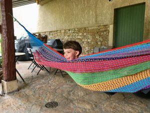We love Joan and Mike’s home! It’s very beautiful and has a lovely yard and garden space. The kids have loved running around in the grass! We ate burgers on the patio for lunch and then Joan taught the kids how to play croquet. Both kids like it, though they also created a game where they run down the hill with the croquet mallets and try to pull up the wickets on the way down.