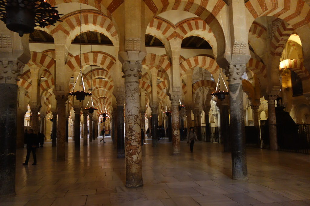 The Mezquita was the top item on my Must See list in Cordoba, so we started there this morning. The Mezquita is a former mosque that was converted to a Catholic church after Ferdinand and Isabella pushed the Moors out of Cordoba. Instead of destroying the mosque, the Catholics recognized the beauty of the building and built a Cathedral right in the middle of the mosque! They preserved all the stunning double arches and more than 800 pillars that support the massive roof.