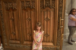 We swung through the LEGO store too, but as the kids aren’t quite into the kit building stage yet, we escaped with my wallet in tact. We also wandered through the Saint James Cathedral. They were at the tail end of a massive renovation project in preparation for the Pope’s visit this fall. The cathedral was very impressive. We talked about the history of the cathedral, what all the statues and lit candles in the alcoves meant, and why it was important to be quiet and respectful of the other people there. Kamy was amazed at the size of the doors!