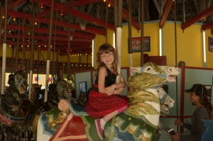 After lunch we went back to the zoo to ride … the Bug Carousel! Instead of horses, all the critters you ride are bugs and caterpillars and other insects. I lost count of how many times we rode the carousel over the length of our trip.
